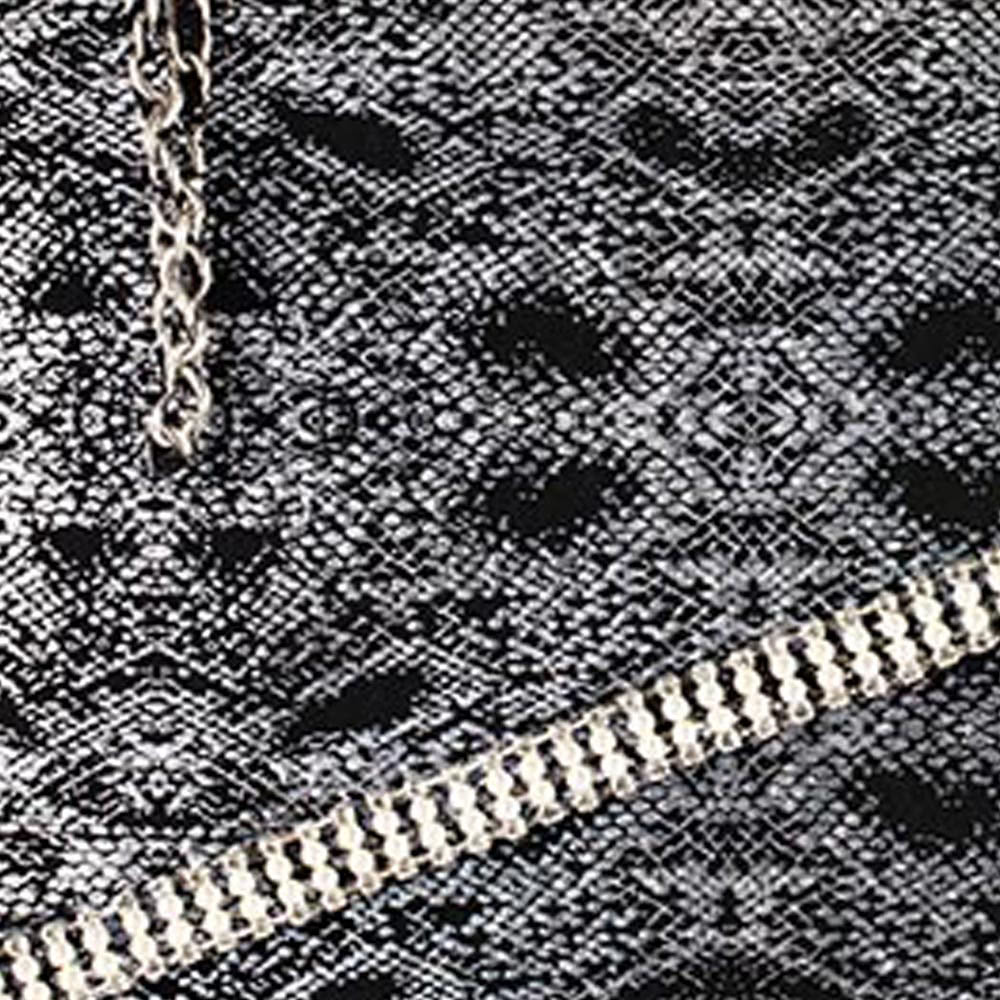 Florence es un Pochette de la Linea XL, confeccionado en tela gris y negra, bordada con plumas de marabú y strass.