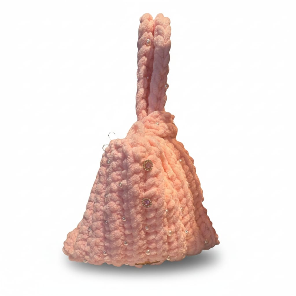 Elyon est une pochette tricotée à la main, en forme de nœud japonais, ornée de délicates broderies de perles. Un modèle unique qui évoque le sublime et le divin avec élégance et harmonie.