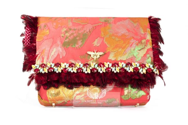 Fabriquée dans le meilleur tissu dans les tons rouges, Lantanos Luminosa est une Pochette avec beaucoup de travail de broderie, elle regorge de détails qui la rendent subtile, délicate et unique. C’est une Pochette incontournable dans tout dressing.
